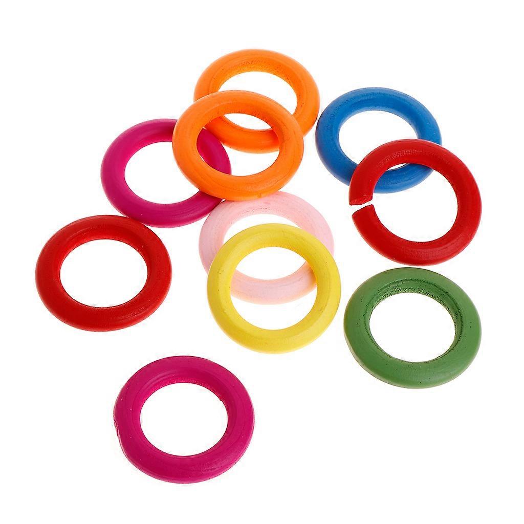 10-Pack Unfinished Wooden Rings Natural Wood Circles with Colorful Paint for Crafts DIY Bird Parrot Toy 1"/1.4" O.D.