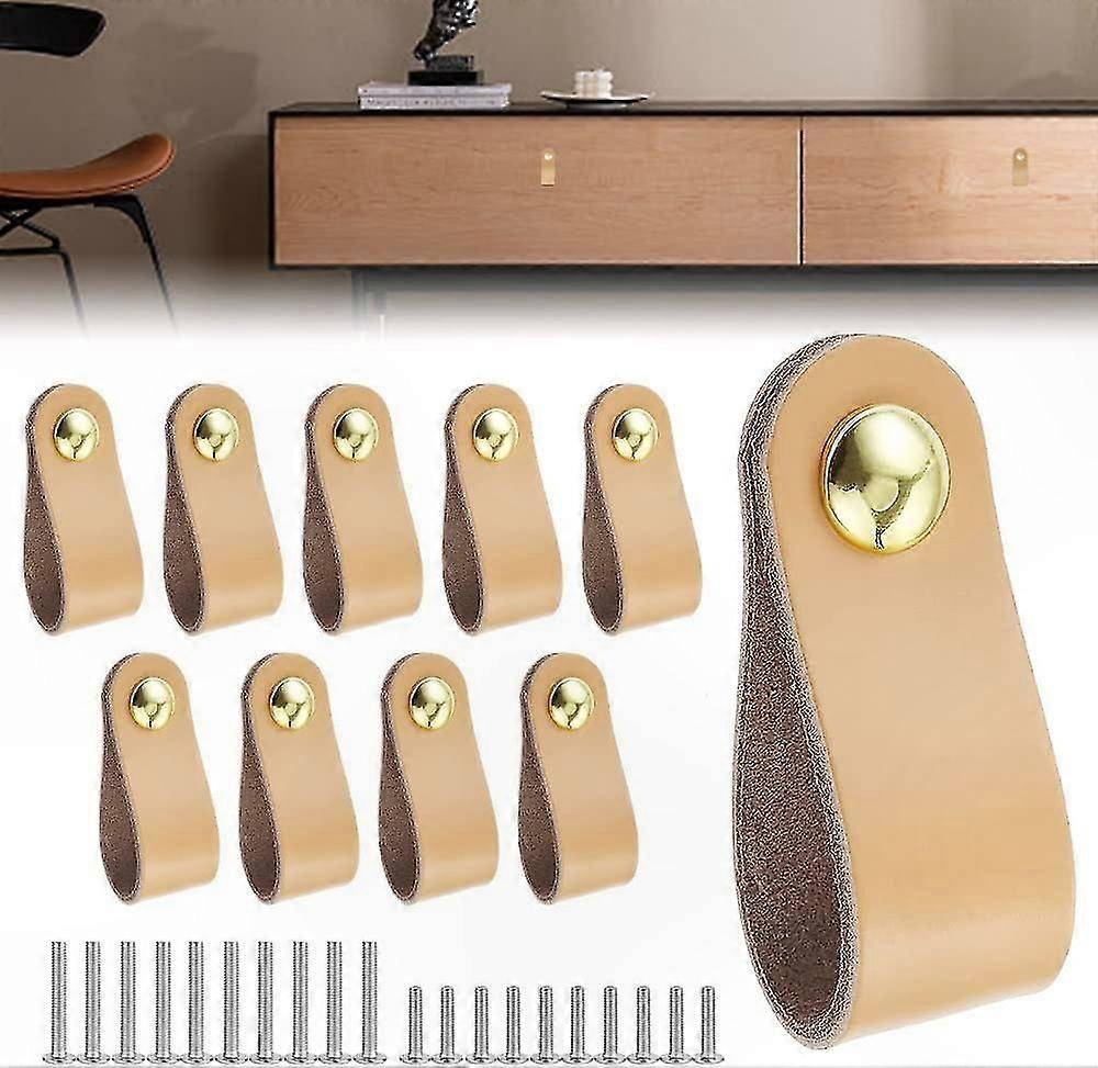 10 Pack Cabinet Handles, Modern Leather Grip Handles for Furniture, Drawer and Door Pulls, 70x8x25mm Size