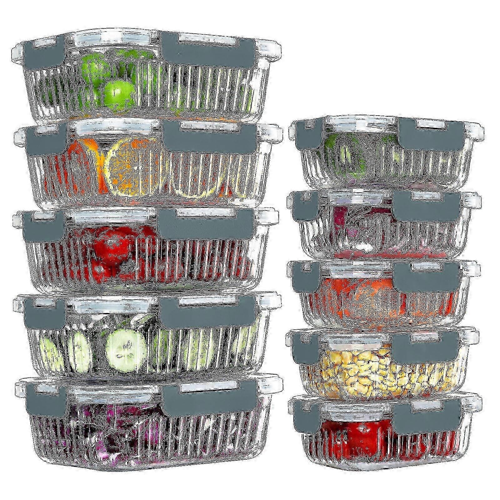 10-Pack Glass Food Storage Containers with Lids, Airtight for Meal Prep, Microwave, Oven, Freezer Safe, Gray