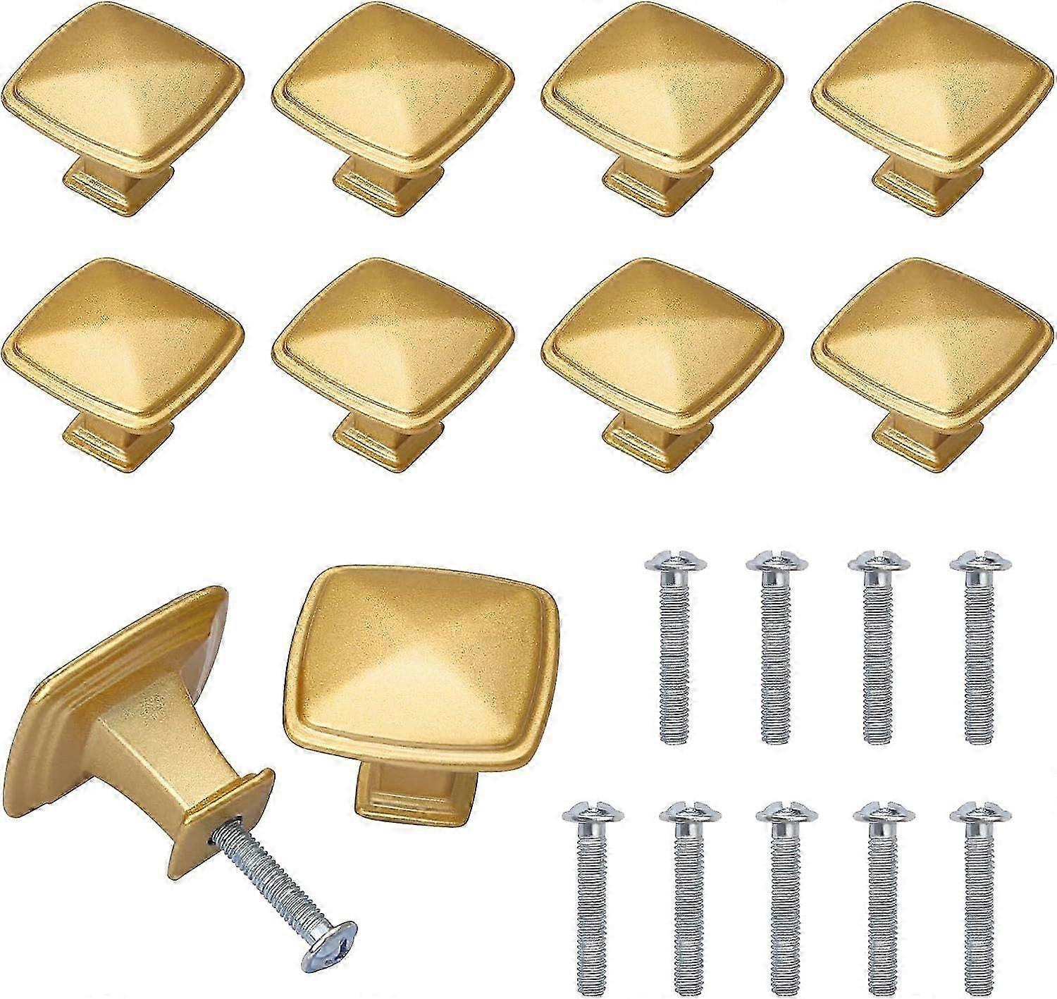 10 Pack Gold Cabinet Drawer Knobs, Brass Door Handles for Cabinets, Kitchen, Cupboard, Bathroom with Screw Bolts, Square Shape, Zinc Alloy