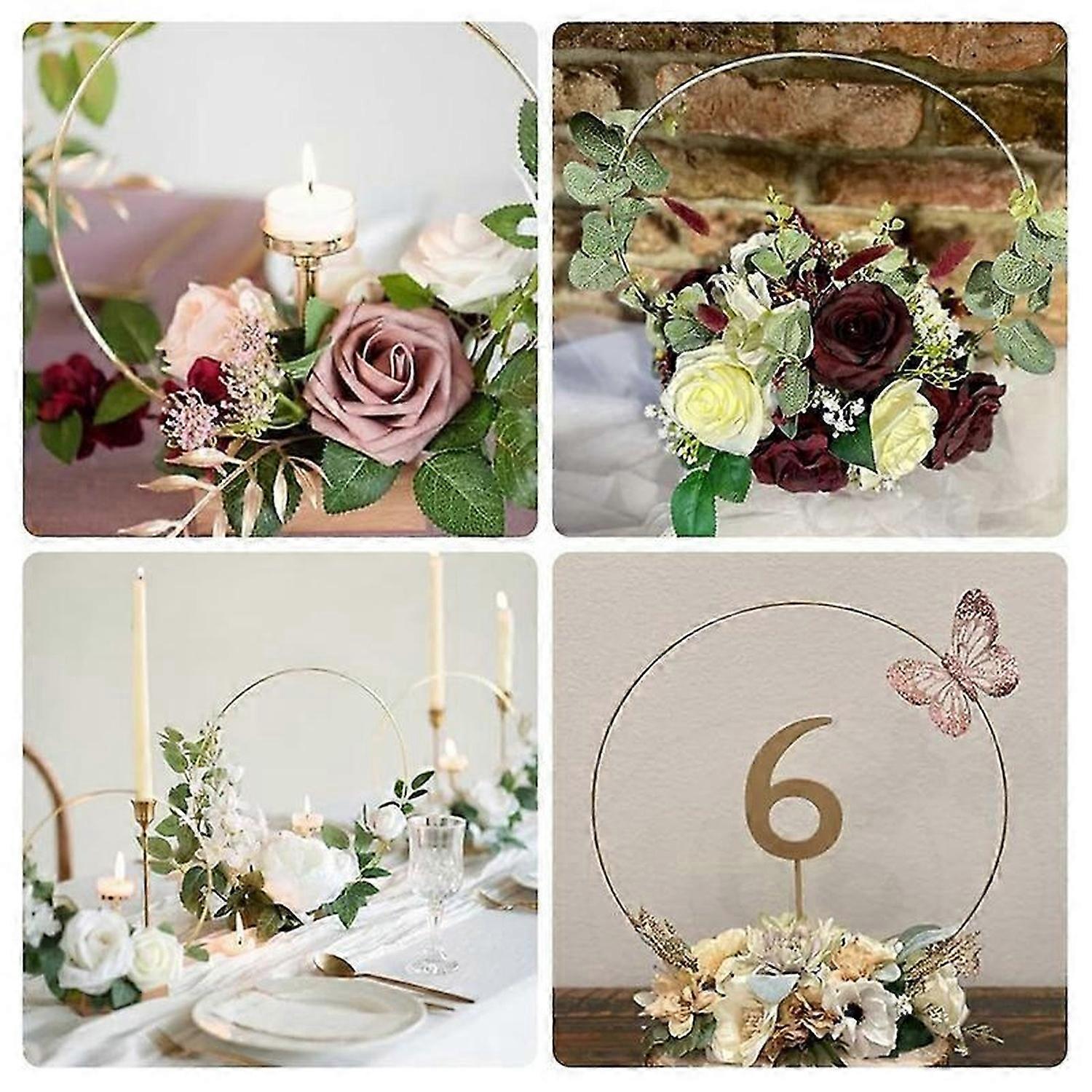 10 Pack 10 Inch Metal Floral Hoop Wreath Centerpiece Table Decorations with Place Holders for DIY We