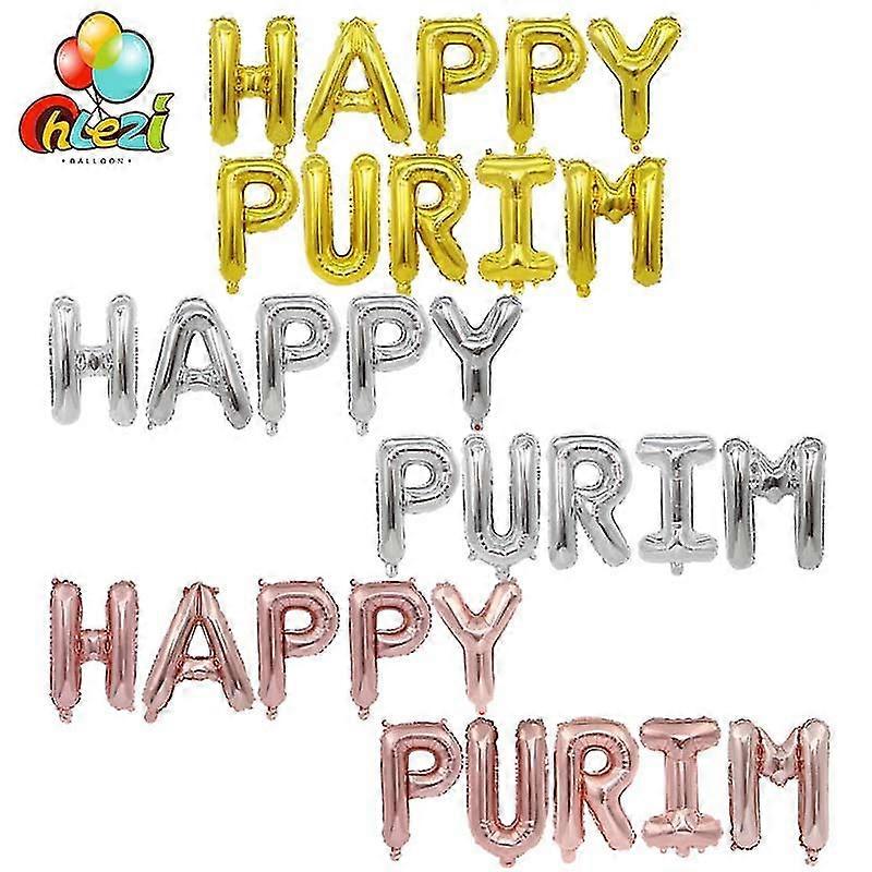 10pcs/lot Happy Purim Banner Foil Balloons 16inch Rose Gold Silver Hanging Letters Air Inflatable Ballon Party Decoration Shower