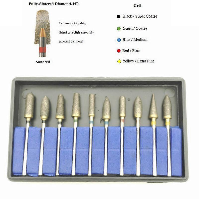 10pcs/kit Dental Universal Sintered Diamond Polisher Kits Burs Grinder for Polishing Trimming Drill 2.35mm