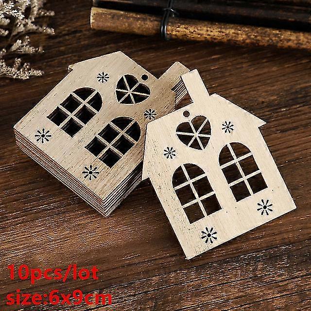 10pcs/set Navidad 2023 Christmas House Diy Wooden Pendant Hanging Tree Ornament Diy Crafts Party Home Decor Noel New Year 2024