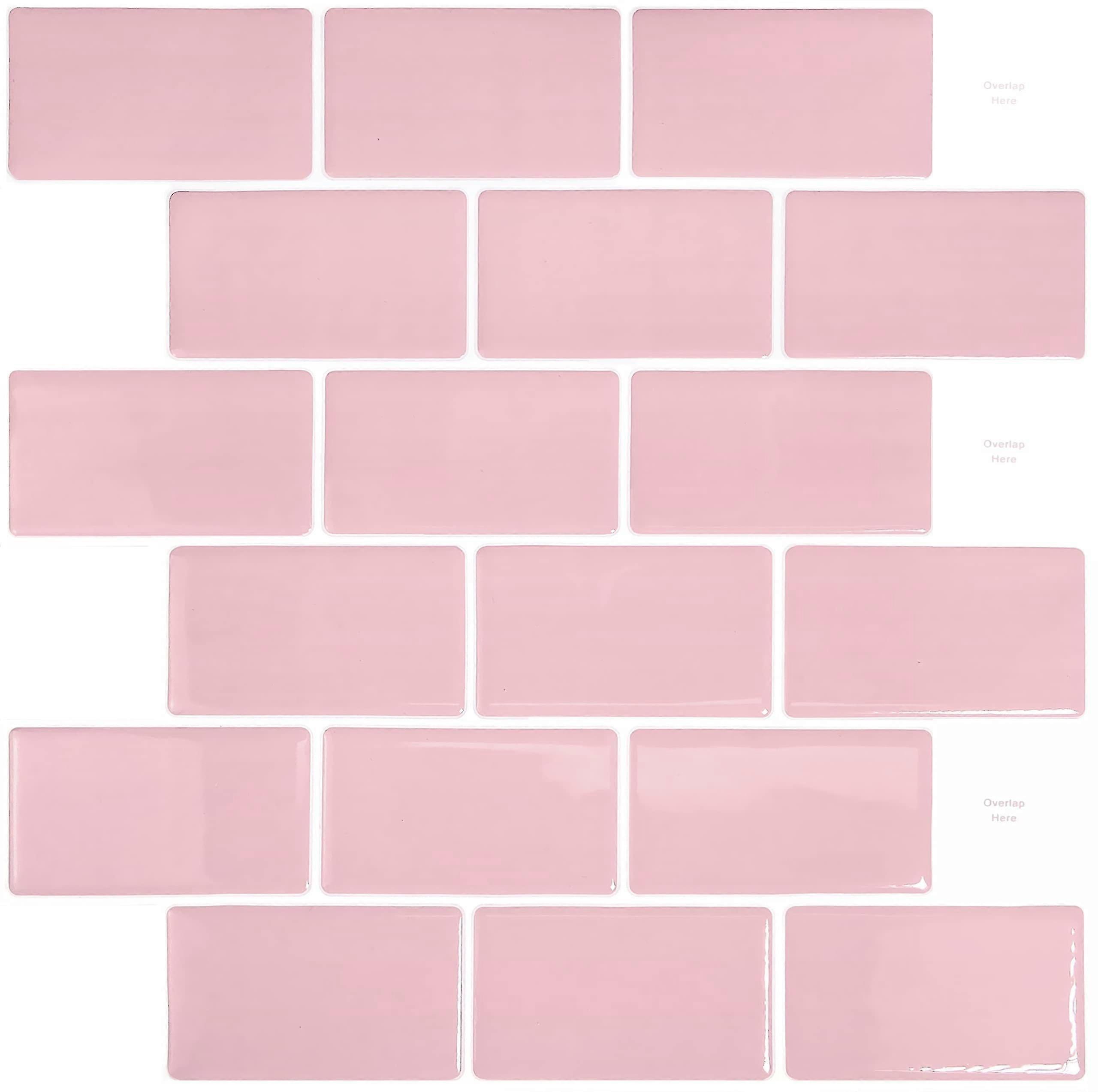 10 Pieces,Pink Subway Self Adhesive Tiles,Adhesive Backsplash Kitchen Bathroom,3d Brick Vinyl Adhesive Paper,30.5x30.5cm