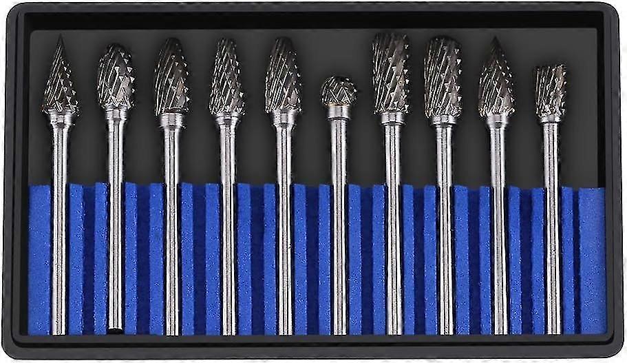 10Pcs Tungsten Carbide Steel Rotary Burrs Set 3mm Shank 6mm Cutter Head Diameter Engraving Tool(Double Cut)