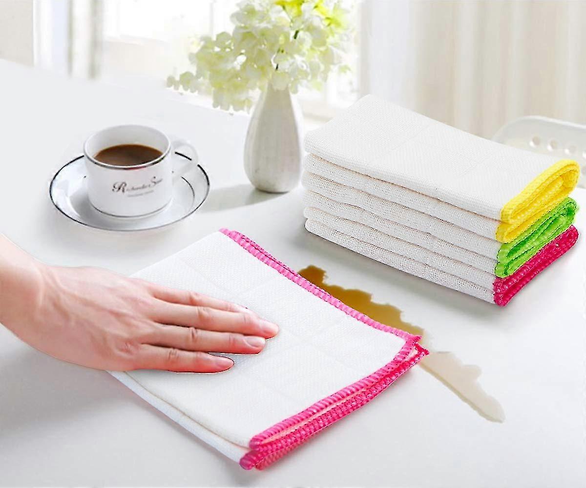 10pcs Bamboo Dish Cloths Towels Kitchen Cloths For Cleaning Dishcloths Washable Absorbent Machine Washable, Random Colors