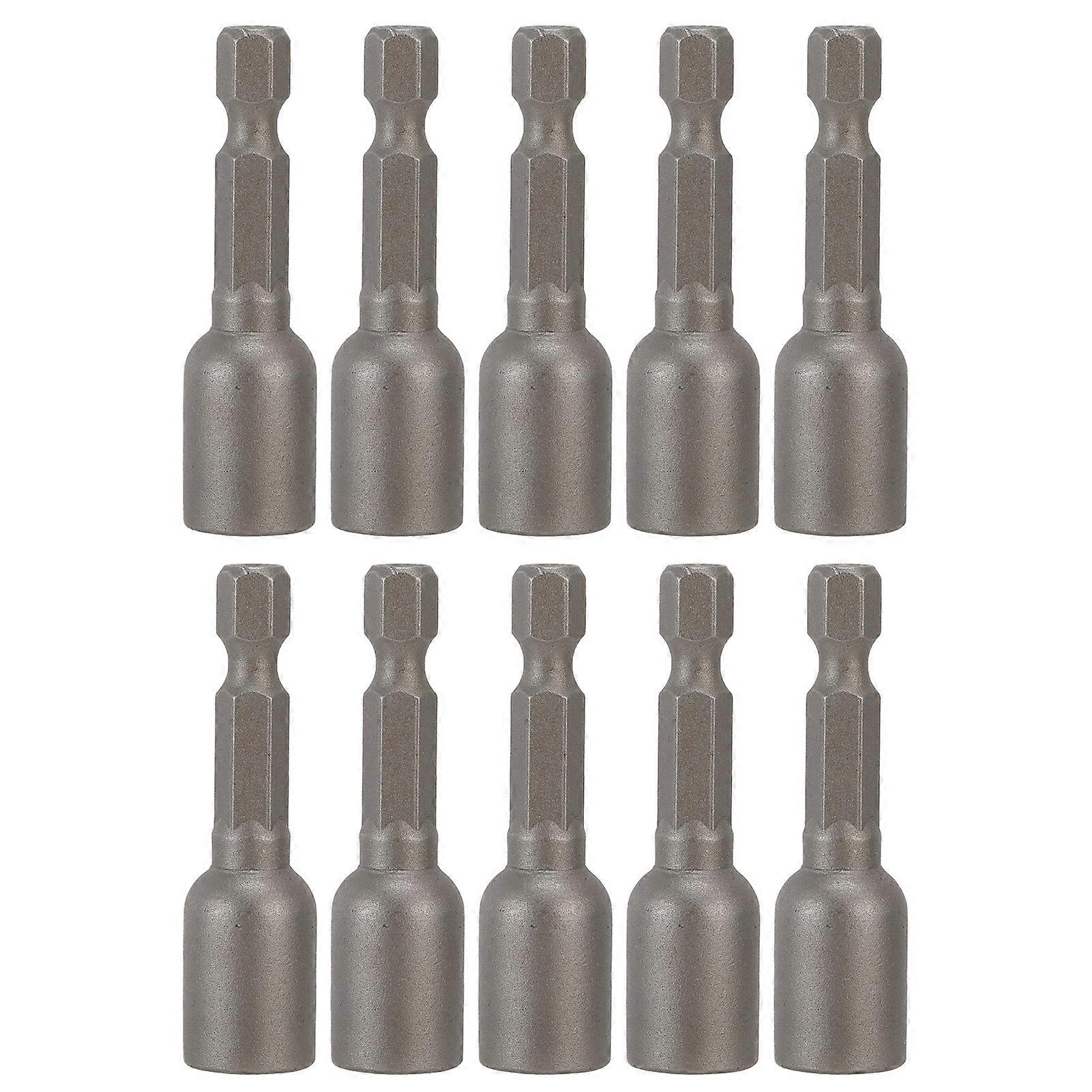 10Pcs Power Nut Driver Hex Magnetic Bit Set Socket Impact Drill Bits M8x48mm 1/4in ShankGrey