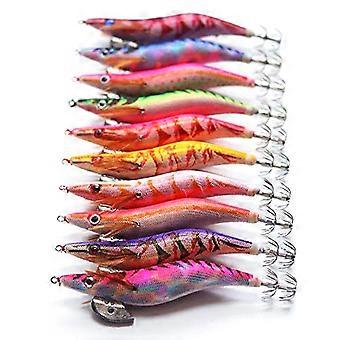 10Pcs Fishing Lure Sinker Squid Jig Hook Wooden Shrimp Artificial Fishing Lures Octopus Cuttlefish Shrimp Fishing Bait