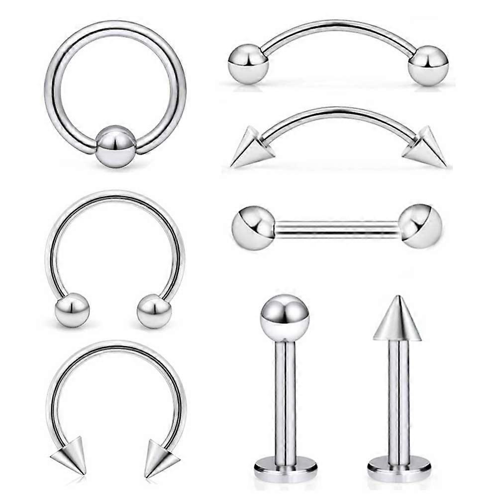 10PCS Stainless Steel Tongue Pin Nipple Ring Eyebrow Lip Nail Body Piercing Jewelry Set(Silver)