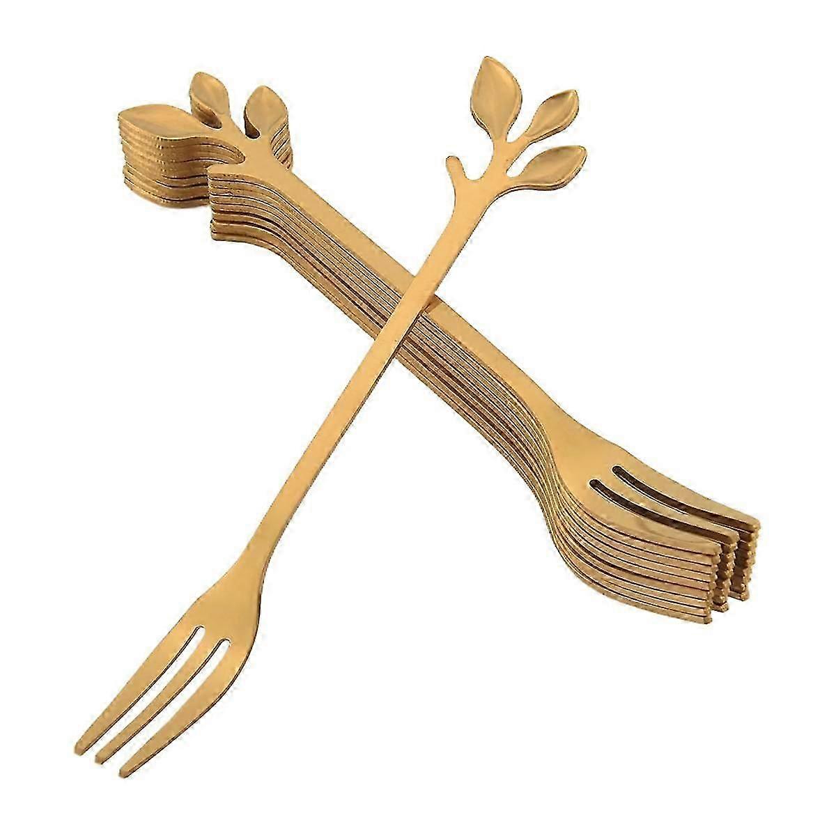 10 Pcs Stainless Steel Leaf Cake Fruit Forks Set Tasting Dessert Forks Kitchen Accessory Wedding Pa