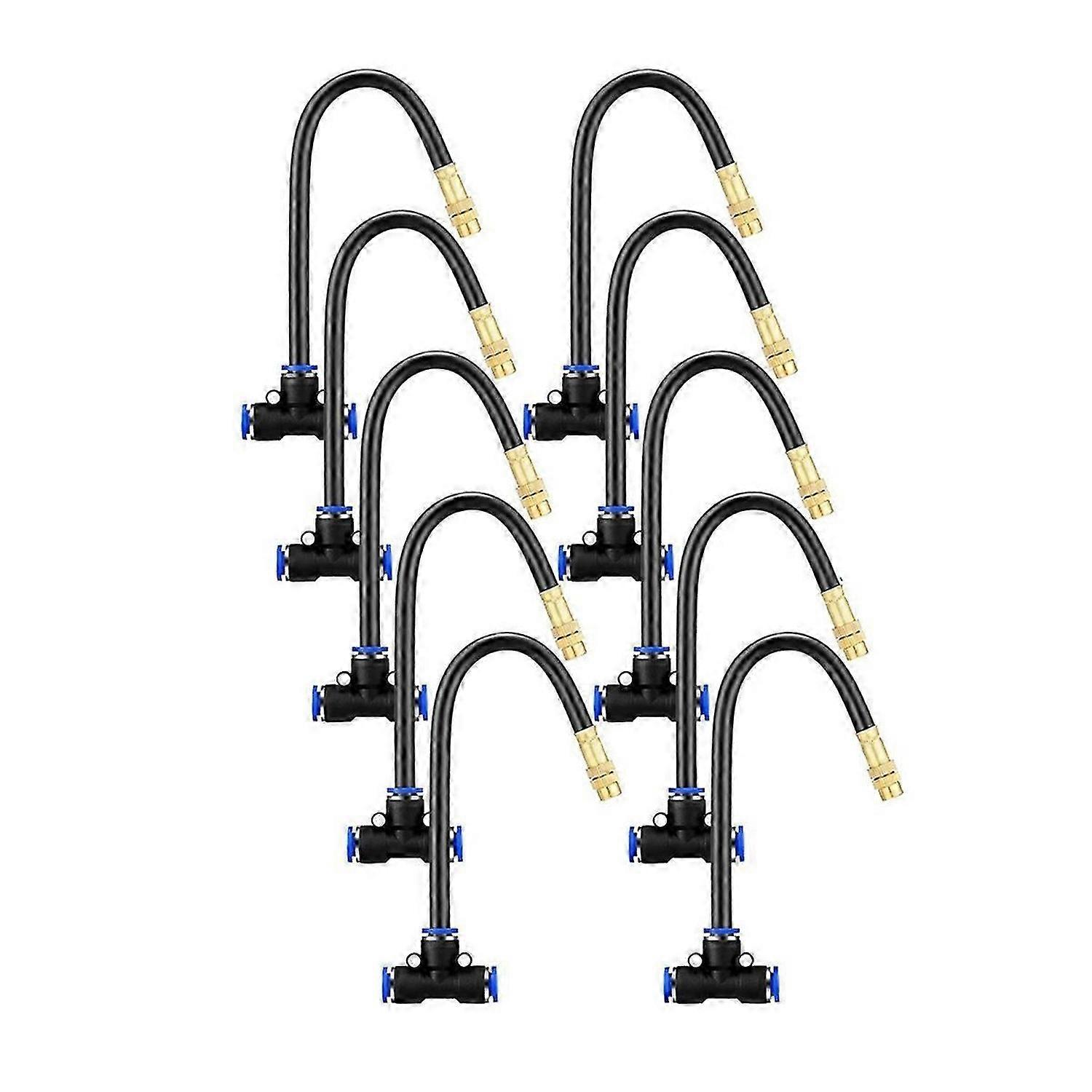 10 Pcs Brass Misting Nozzles Tee with 8 Inch Built in Hose 360 Degree Rotation Adjustable Water Mister Nozzles