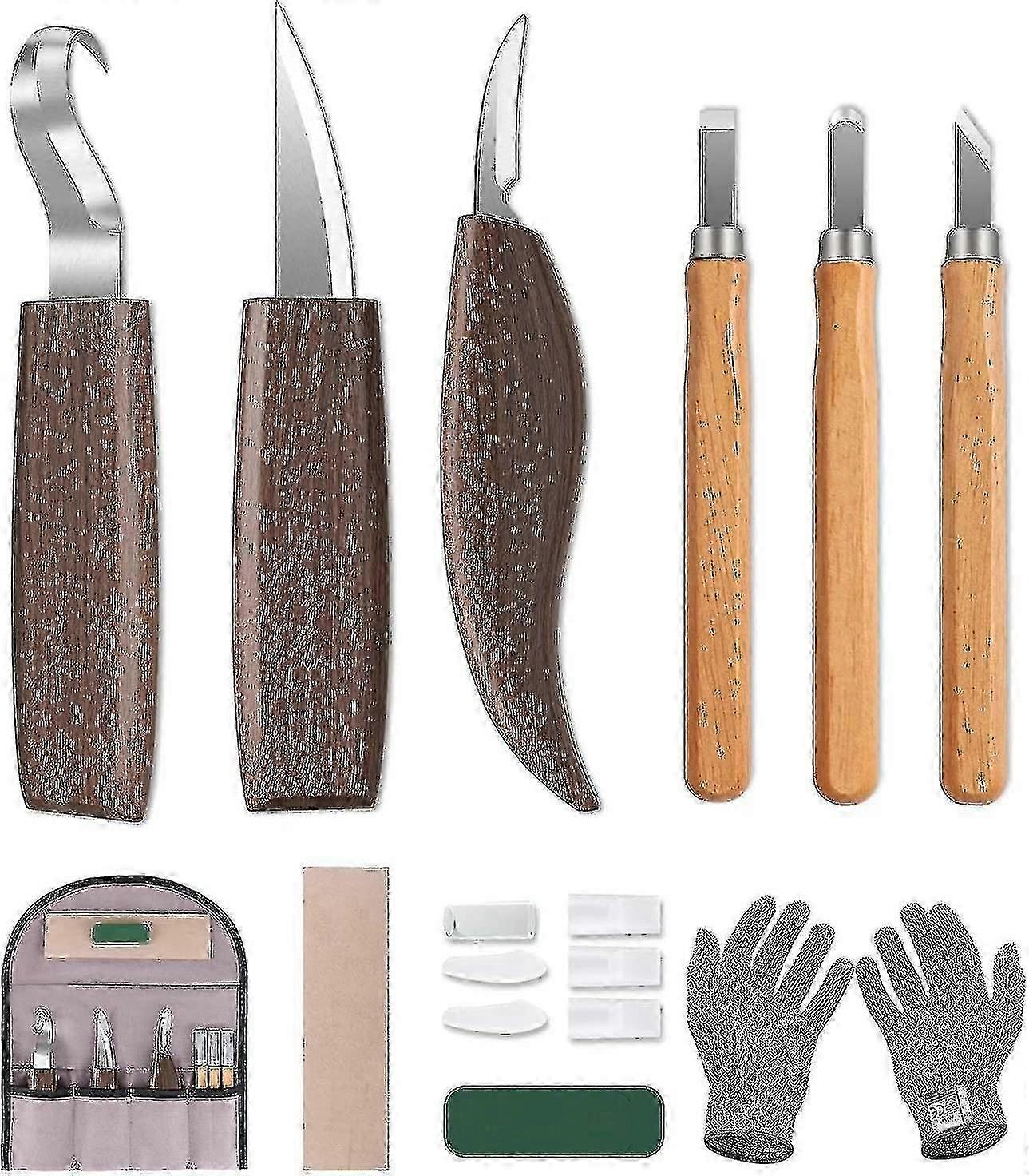 10pcs Wood Carving Tools, Wood Carving Kit With 3 Wood Chisels, 3 Wood Carving Knife, Gloves, Storag