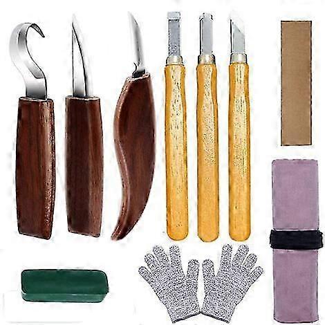 10 Pieces Wood Carving Tools, Wood Carving Knife Set, Wooden Handle, Handmade Wood Carving Craft Professional Woodworking Macaron