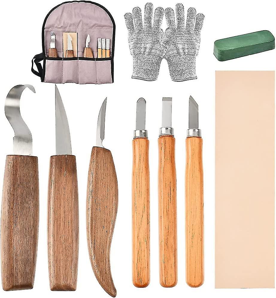10pcs Wood Carving Tools Kit, Carbon Steel Kit With 3 Wood Chisels, 3 Wood Carving Knife, Gloves, Storage Bag, Professional Wood Carving Tools For Beg