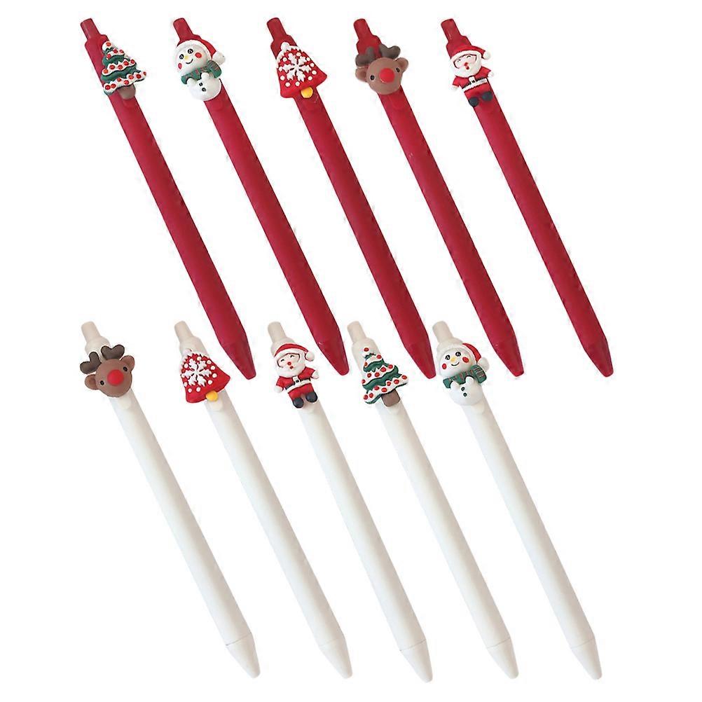 10pcs Christmas Pens Cute Cartoon Santa & Xmas Tree Design, Holiday Writing Ink Pens for Kids, Office, School, Party Favors, DIY Crafting &