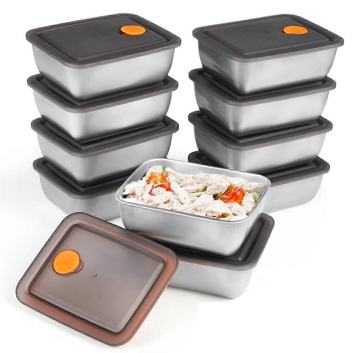 10 Pcs Food Containers with Lids, 20 Oz 316 Stainless Steel Storage Containers, Leakproof Snack Stor