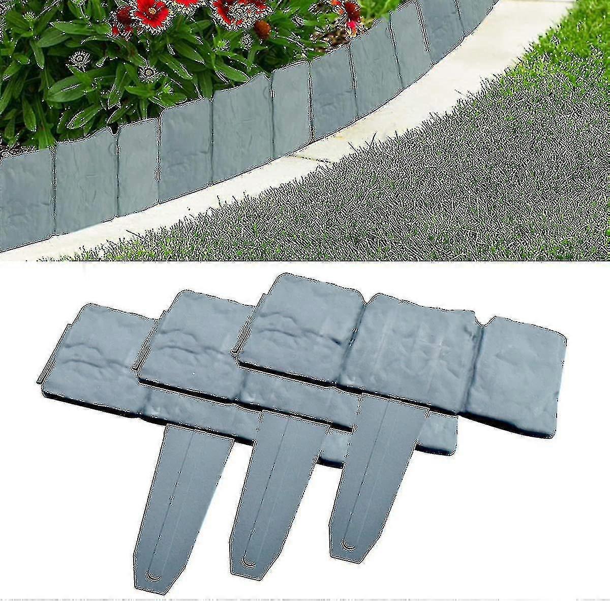 10 Pcs Garden Edging, Garden Lawn Edging Fence Edging Gray Plastic Garden Lawn Edges Palisade Stone Effect Lawn Fenceedging For Garden Lawn -aya