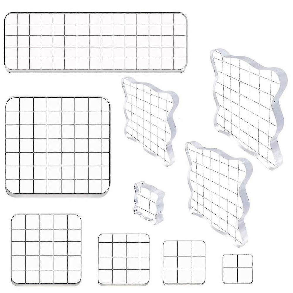 [PACKING] 10 pieces stamp blocks with 10 different sizes including 15 x5 cm, 7.5 x 7.5 cm, 5 x 5 cm, 3.8 x 3.8 cm, 3.1 x 3.1 cm, 2.5 x 2.5 cm,10 x 10 cm, 7.6 x 7.6 cm,5 x 5 cm, and 2.5 x 2.5 cm. Each one is 8 mm in thickness.[INNOVATE DESIGN] designed with the clear grid lines on the one side to help you plan and design, each grid measures 1 x 1 cm, besides, it allows other blank side to be positioned and applied better.[QUALITY]Stamp blocks are made of clear acrylic, sturdy and durable, easy to clean with water and towel, can serve compatible with a long time. Adhere silicone stamps to the blocks perfectly with no need compatible with any adhesive and peel off after use just as easily.[SAFE & EASY GRIP DESIGN] The curved edges of the acrylic stamping blocks are to fit your fingers tightly with easy grip, and blocks with rounded corners provide you with a safe and comcompatible withtable grip.[APPLICATIONS] Clear stamp blocks are multifunctional compatible with stamping on card making, journals, scrapbooking, invitations, stamps, DIY projects, wooden ornaments, Christmas cards, Thank You cards, gift tags, schedule book, clipboard, planners, etc.Material:Acryliccolour:Transparent colorPackage Contents:10 * Stamps Pad ToolsOnly the above package content, other products are not included.Note: Light shooting and different displays may cause the color of the item in the picture a little different from the real thing. The measurement allowed error is +/- 1-3cm.