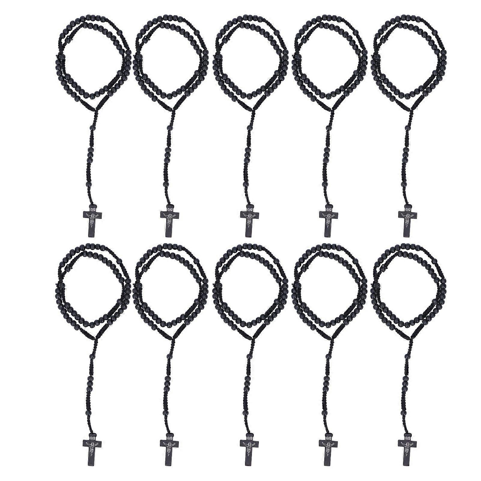 Feature:1. Material: This rosary is made of sturdy rope and thick wooden beads, which are safe and non toxic.2. Plenty of Quantities: These cross rosary beads are in sufficient quantity to give to more friends.3. Unique Style: This is a reliable cross necklace for kids, men and women. Suitable for all genders and ages!4. Exquisite: Each men's and women's wooden cross necklace has a unique wood texture and color, because no two pieces of wood are the same in the world.5. Gift: Give this lovely Rosary to yourself or a loved one on any special occasion or holiday such as New Years, Birthdays, Baptisms, First Communion, Confirmation, Wedding, New Home, New Office, Priesthood, Christmas or Resurrection Festival.Specification:Item Type: Wooden RosaryProduct Material: Log, PolyesterProduct Use: Suitable For Religious Gifts, Etc.Product Size: Approx.4.2 x 2.4 x 42cm / 1.7 x 0.9 x 16.5in.Package List:10 x Rosary