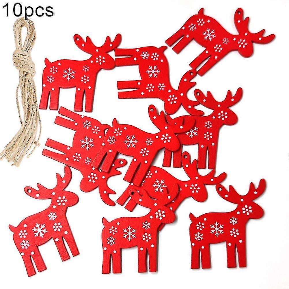 10Pcs Wooden Deer Shape Snowflake Print Hole Rope Hanging Pendant Home Decor