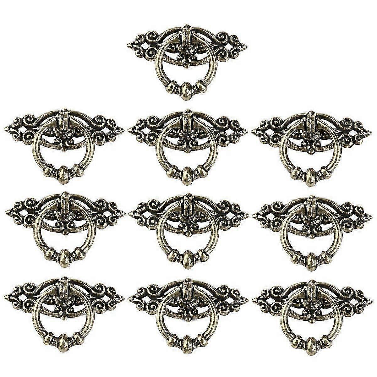 10Pcs Vintage Kitchen Cabinet Cupboard Dresser Door Drawer Ring Pull Handles Knobs (Antique Brass)