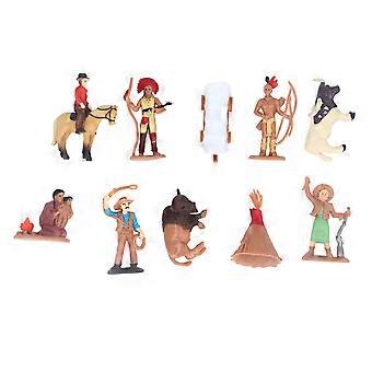 10Pcs Cowboy and Indian Action Figures Strong Durable PVC Rich Details Cowboy Figurines for Kids Game Decoration