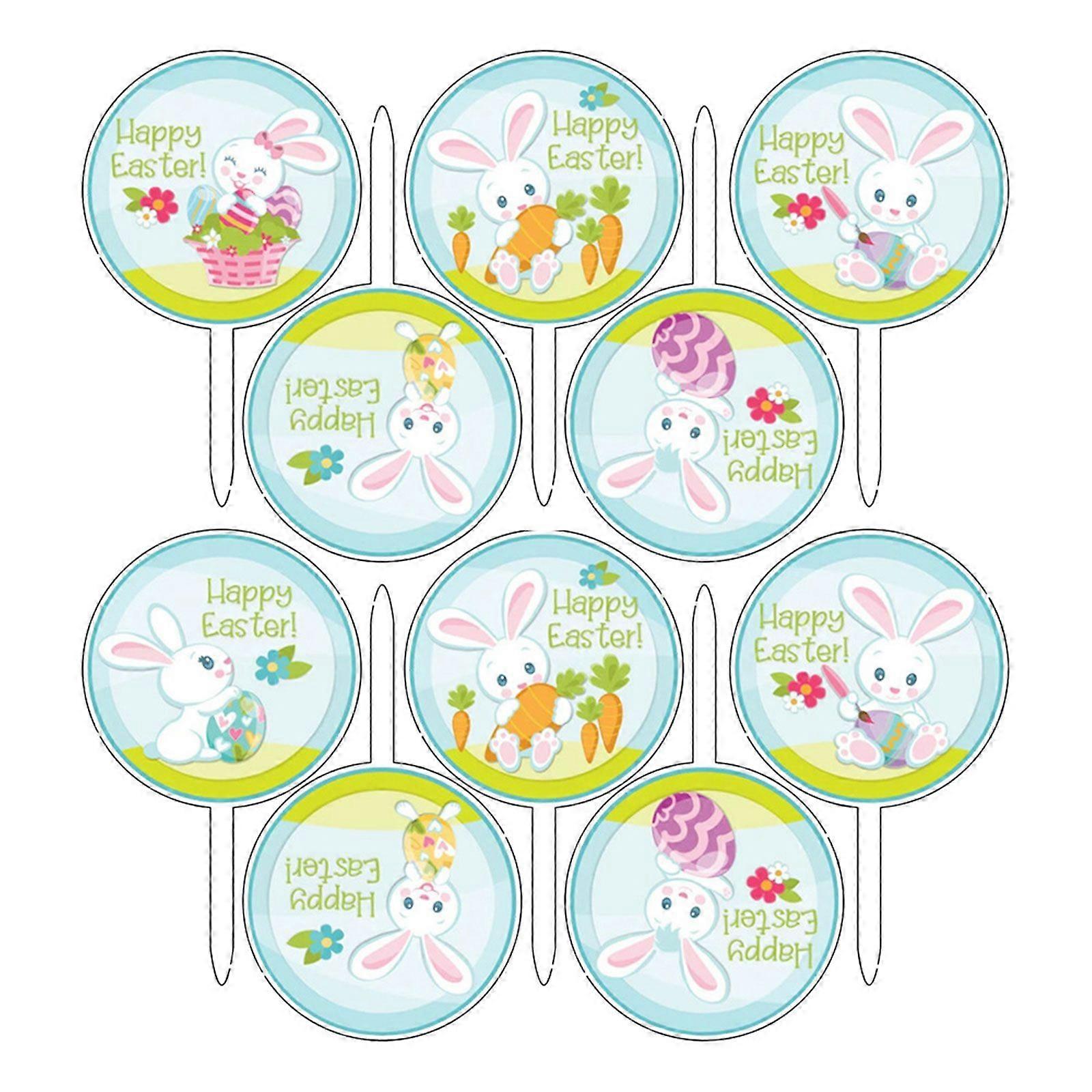 10pcs Happy Easter Cake Toppers Acrylic Bunny Rabbit Cake Picks Cupcake Stick Wedding Birthday Party Decorations