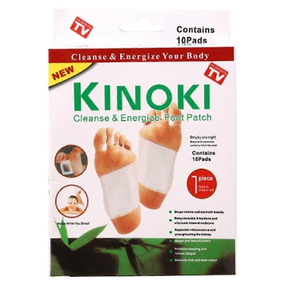 Benefit:•Release unwanted toxins•Increase your energy level•Reduce aches, pains, headaches, & tiredness•Relieve stress•Improve your metabolism•Improve your blood circulation•Improve weight loss•Dispel toxins and maintain beauty•Relax muscles & tendons and eliminate internal moisture•Replenish vital essence and straightening the kidney•Shape & beautify body•Promote sleeping & relieve fatique•Beautify foot & clear odour Instruction for usage:•Apply Kinoki detox patch one hour before bed-time.•Wash and dry your feet or body part before applying kinoki Detox Patch.•Take one adhesive sheet and slowly peel off paper.•Place the foot pad on the adhesive where noted to "Put adhesive sheet on this side" and place onto the soles of your feet or the desired area of other body part. (Socks can be worn if necessary)•Wear for 8-10 hours then remove pad.•Used patches will appear dark greenish or grayish as they absorb toxins and waste matter from your body.•Continue to use each night until the discoloration of the pad subsides.