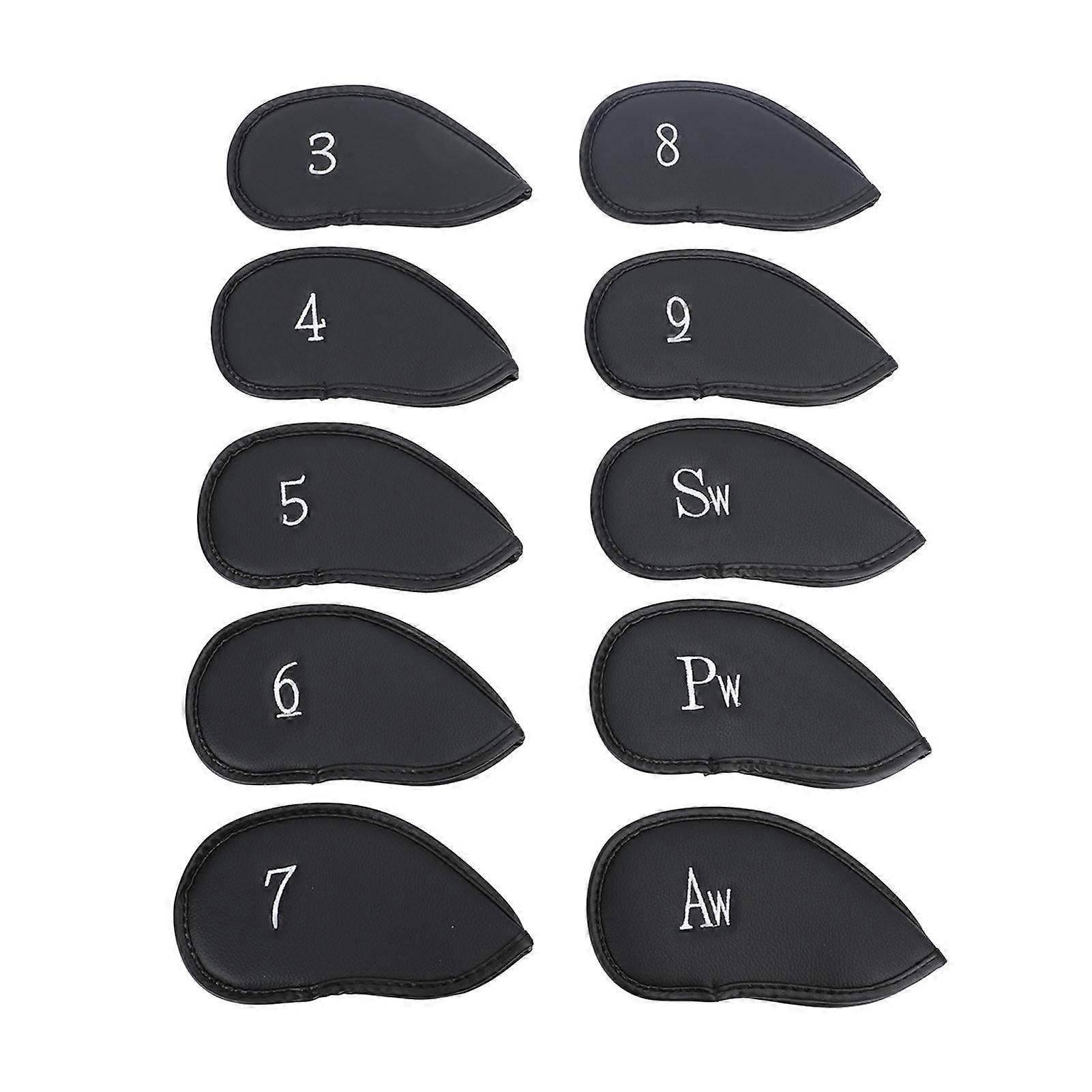 10pcs Golf Club Head Cover Pu Leather Protective Abrasion Resistant Easy To Clean For Most Standard Clubs