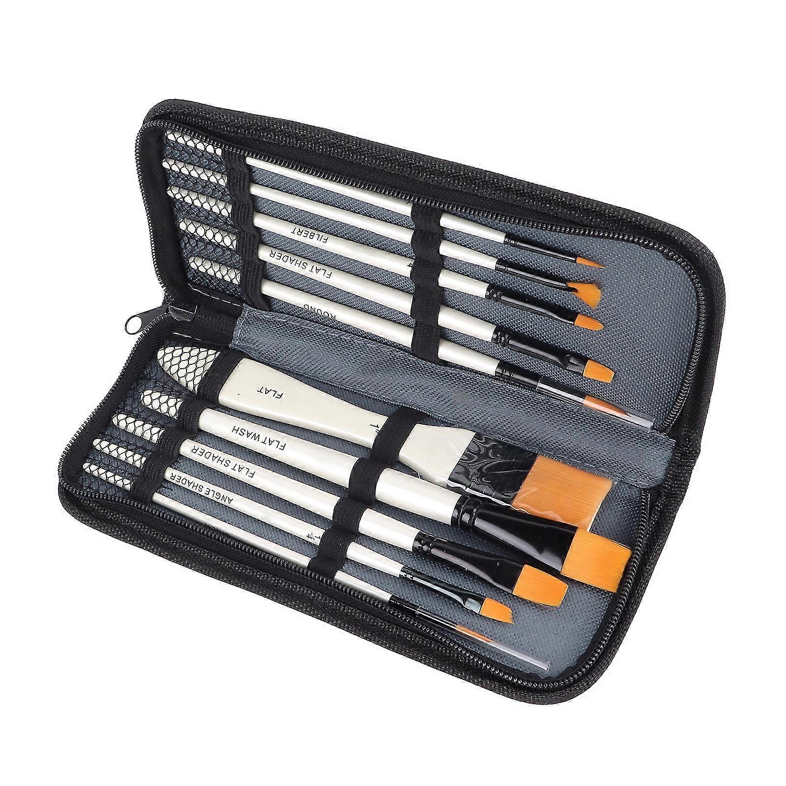 10Pcs Oil Paint Brushes Gold Nylon Hair Wooden Handle Aluminium Ferrule Paint Brush Set with Bag for Acrylic Gouache