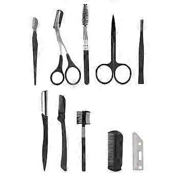 10Pcs Eyebrow Grooming Kit Eyebrow Scissor Eyebrow Comb Tweezer Eyebrow Razor Set