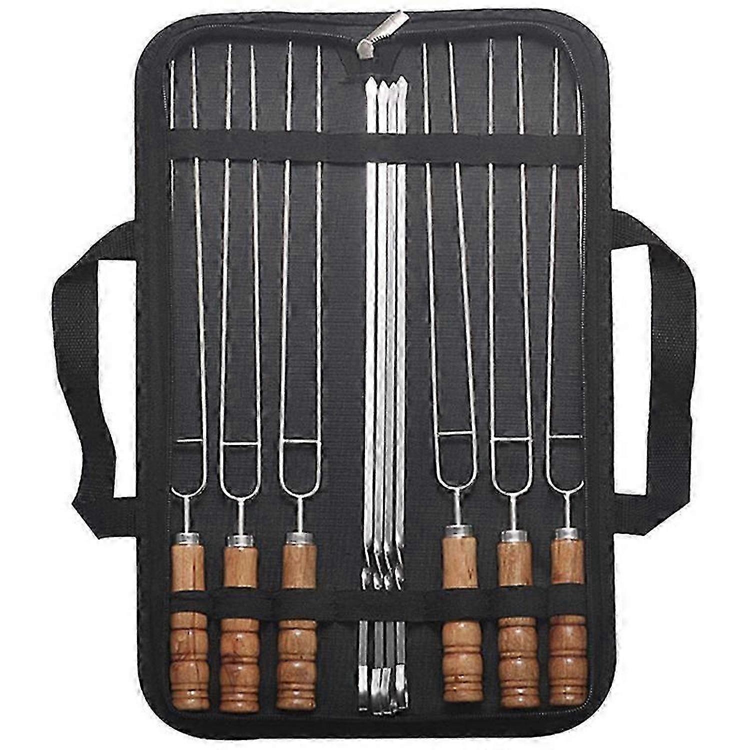 10 PCS/Set Stainless Steel Wire BBQ Skewers Wood Handle Grill Roasting Sticks Outdoor Camping BBQ To SZRH A-K