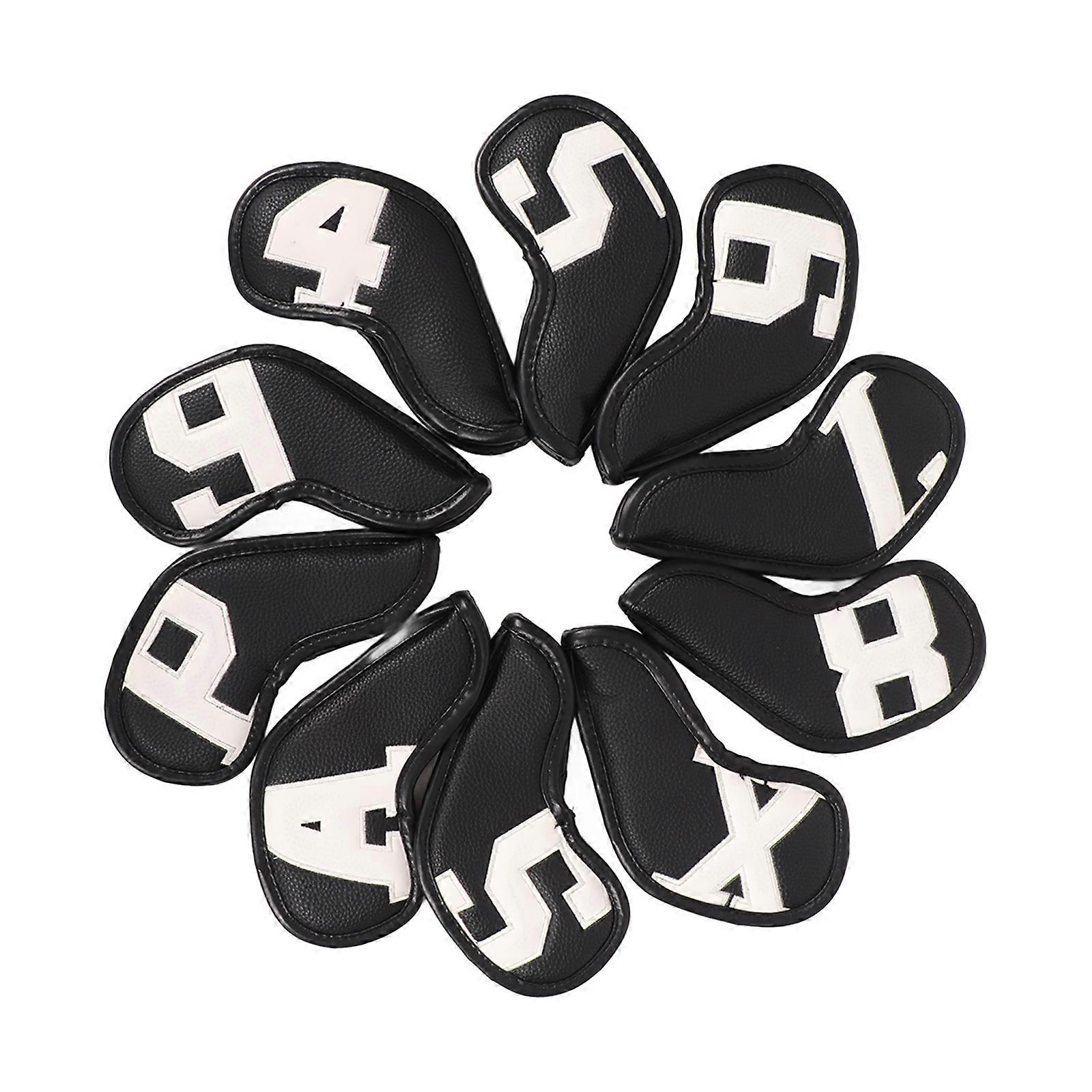10pcs Set Pu Waterproof Golf Club Iron Cover Fine Sewing Process Golf Club Head Protect Case(white Character Black Background )
