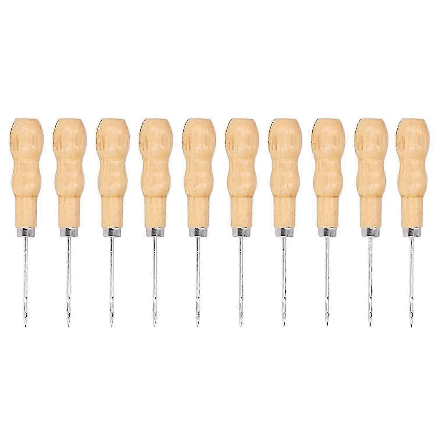 10 Pieces Leather Sewing Cones with Holes Ergonomic Design Steel Needles Pine Handles Simple Hand Cones
