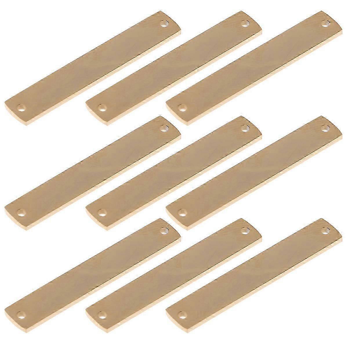 Description This item is a pack of pendants, which is made of stainless steel. It is a great accessories for DIY your necklace, bracelet, earrings. Plating colored style double holes design will add some embellishment and make your jewelry special and outstanding among the crowd. Features - Color: Golden. - Material: stainless steel. - Size: Approx. 3.5x0.6x0.15cm. - Made of alloy, exquisite workmanship, not easy to rust and deform, durable for long term use. - Creative Pendant can be used as decorative earring, hair decorations, necklace, bracelet, zipper, gift making and also be used as other hand-crafted creative DIY accessories. - Fine detail craft making, the jewelry accessories are come with smooth mirror surface, unique and chic. - Usage: key chain, bag pendant, sweater chain pendants, ornaments, etc. - Hanging tags can be machine lettering. Good gift for yourself or friends.Package list: 10 x hanging pendant