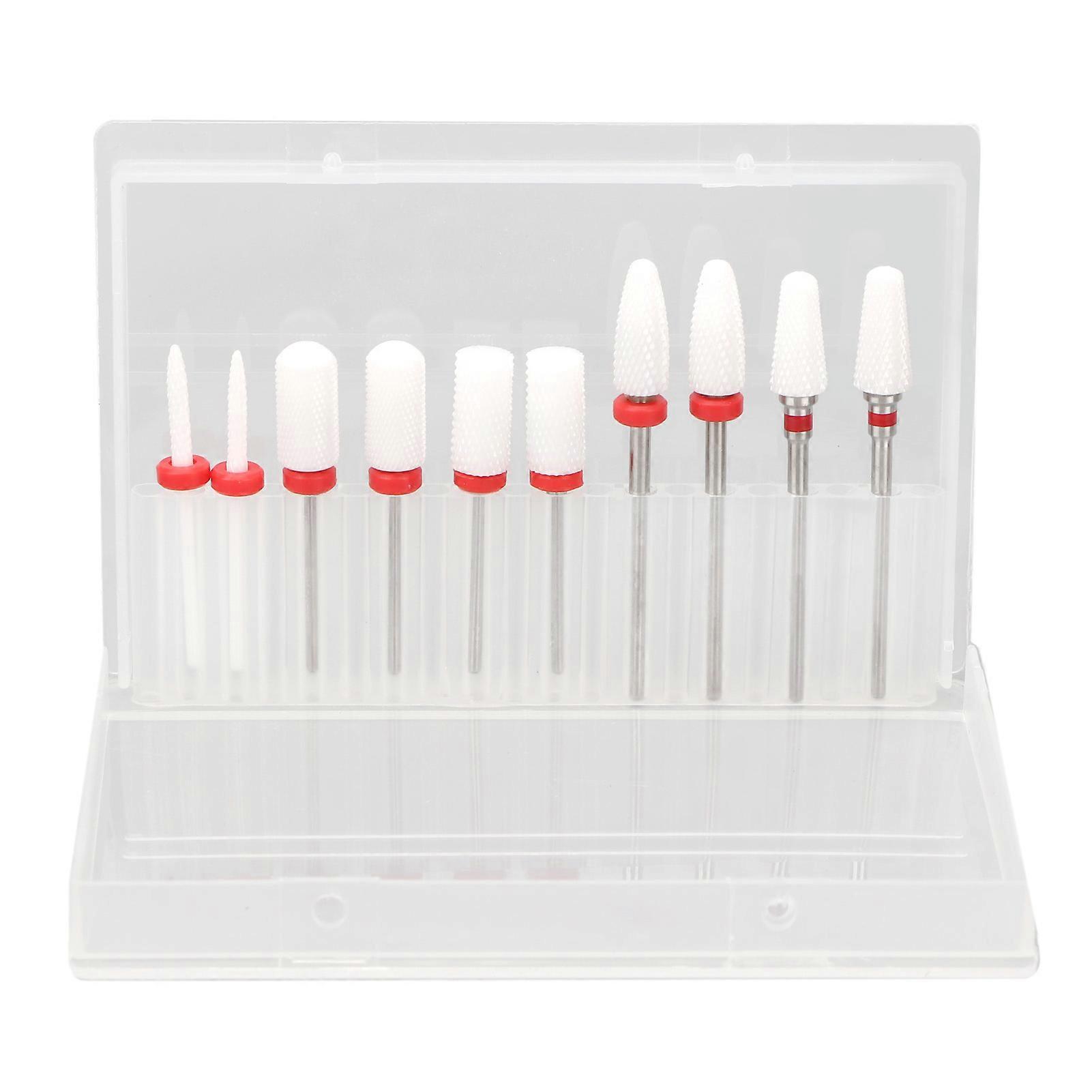 10pcs Nail Art Drill Bits Set Remove Nail Glue Stainless Steel Ceramic Nail Grinding Heads with Storage Box
