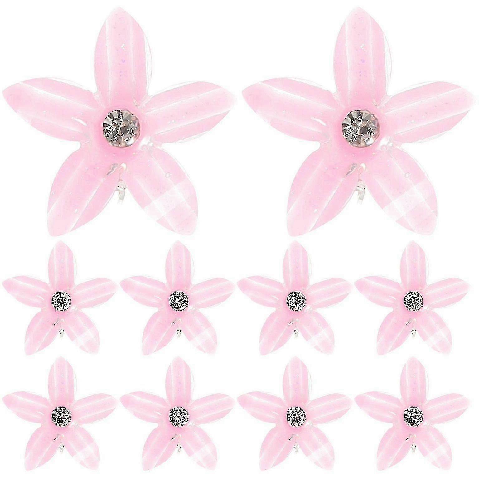 10 Pcs Pink Rhinestone Flower Hair Clips - Durable Mini Claw Barrettes for All