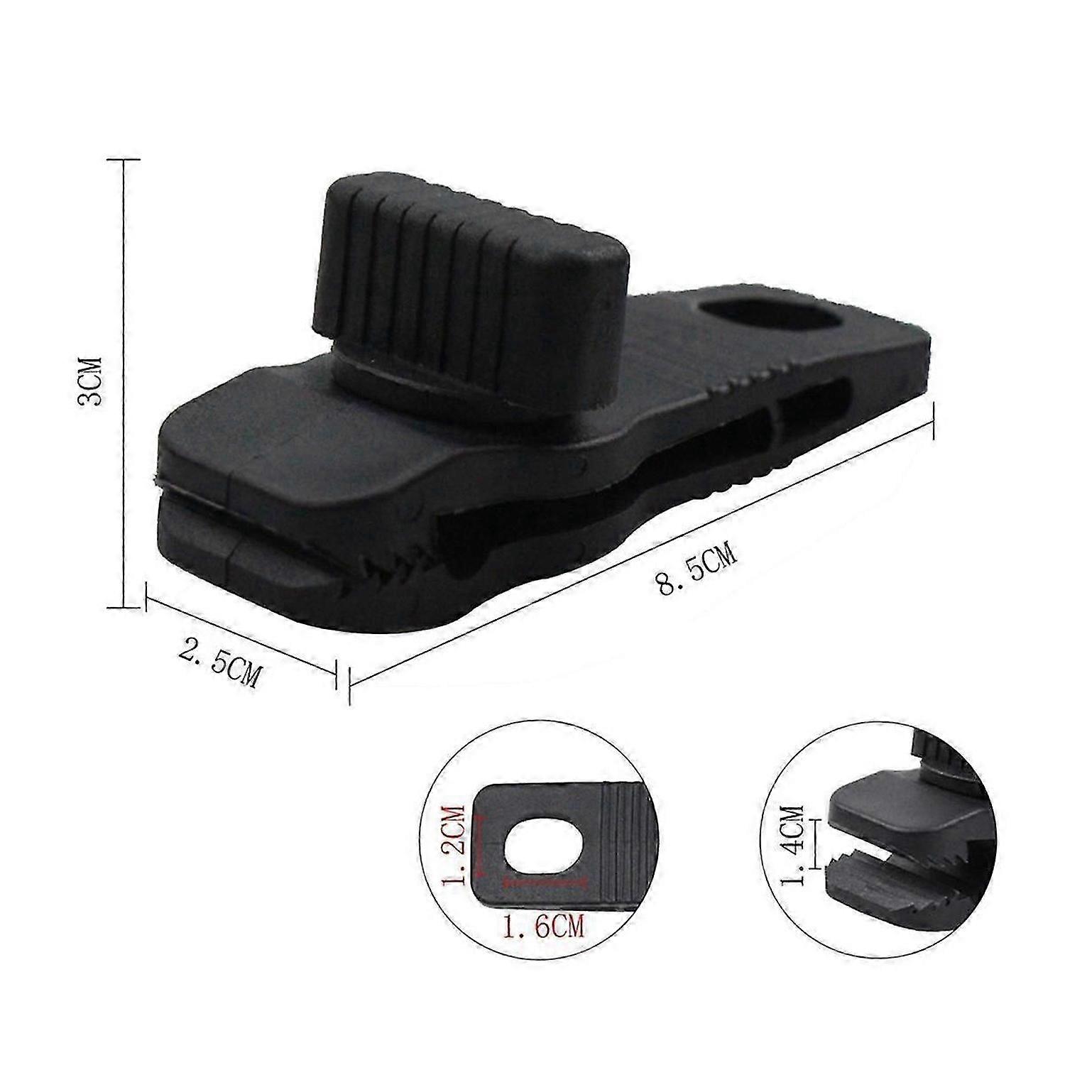 The clip is made of nylon with very good drop resistance and is very durable. Reasonable lock design: the fixture's toothed interface and screw lock design can steadiness the without detachment and damage. The tightness can be adjusted by twisting the knob on the clip, making it easy to install and disassemble, and easy to carry. Suitable for various outdoor activities such as camping, hiking, exploration, mountaineering, etc., providing stable support and fixation for tents. Wide Usage: great for holding up tarp, canopy, , car/truck cover, bike cover, boat cover, pool cover, sun shade, temporary projector screen, couch cover, BBQ cover, etc.<br><br>Please Note: Suitable for thickers fabric surfaces within 3mm/0.12inch, not recommended for use on fabrics that are too light and thin. Depending on the batch, the product may have color differences, which does not affect Colour:Khaki Material:nylon<br><br>Package Contents: 10 x Tarp Clips<br><br>Only the above package content, other products are not included. Note: Light reflection and different displays may cause the color of the item in the picture a little different from the real thing. The measurement allowed error is +/- 1-3cm.