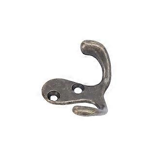 10Pcs Coat Hooks Small Double Prong AntiRust Sturdy Durable Convenient Wall Mounted Tiebacks for Coat Clothing Keys(Antique Brass Plating )