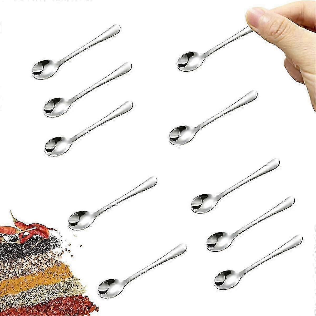 10 PCS Tiny Stainless Steel Spoons compatible with Spices Jars, Mini Size 2.87inch, Cute Small Stainless Steel