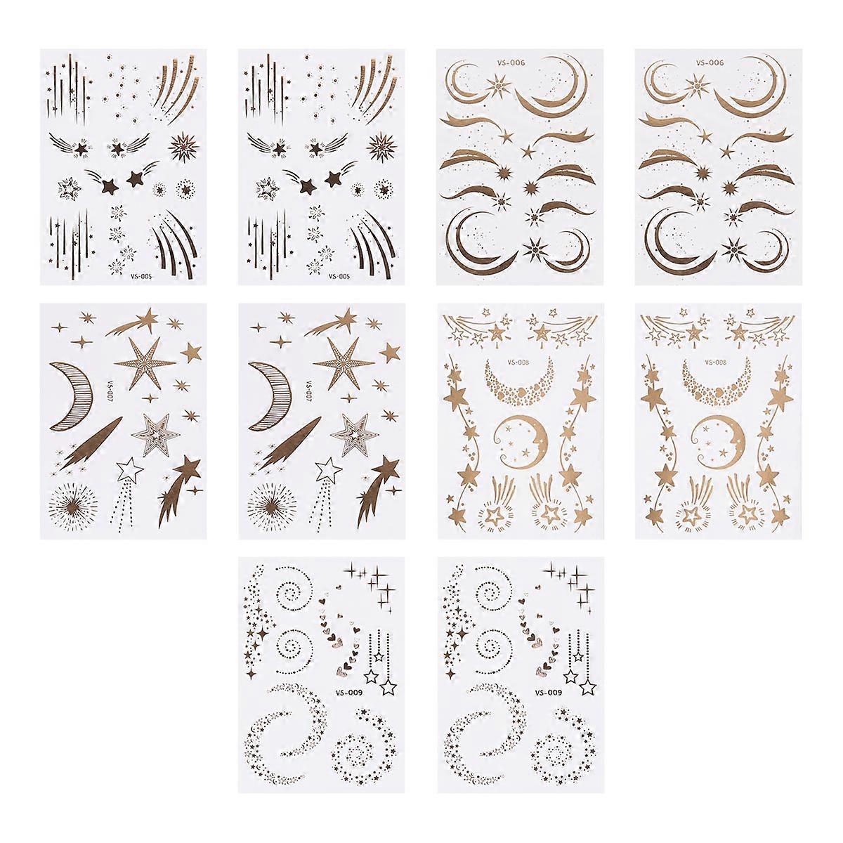 10Pcs Gilding Facial Stickers Waterproof Temporary Tattoos Decorative Sticker Freckle Face Decal VS-005 + VS-006 + VS-007 + VS-008 + VS-009, 2Pcs/Each