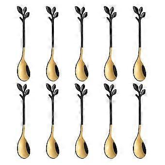 10 Pcs Coffee Spoon Stainless Steel Leaf Coffee Cake Spoon Dessert Spoons, Stirring Teaspoon Set-Yvan