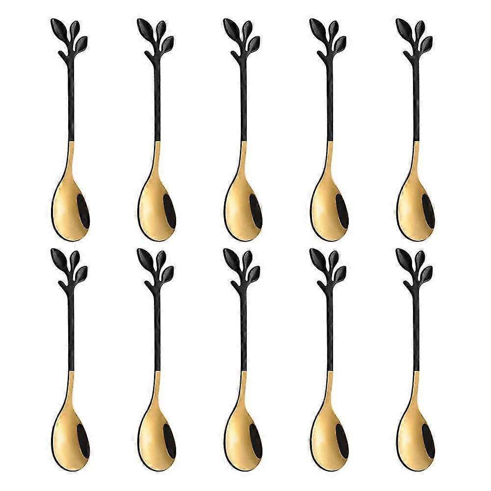 10 Pcs Coffee Spoon Stainless Steel Leaf Coffee Cake Spoon Dessert Spoons, Stirring Teaspoon Set-Good