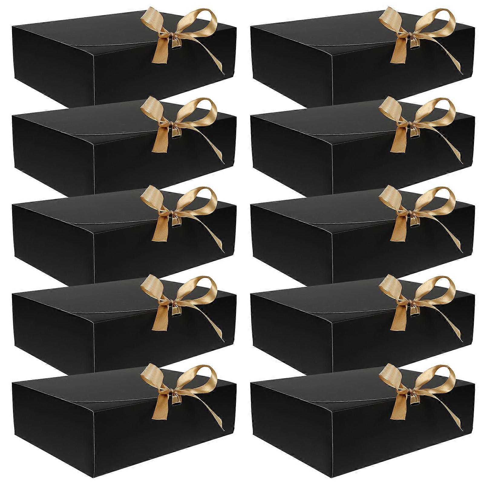 10Pcs Cardboard Gift Packaging Box With Ribbon For Couples And Family On Valentine's Day And Christmas In Black Folding Design