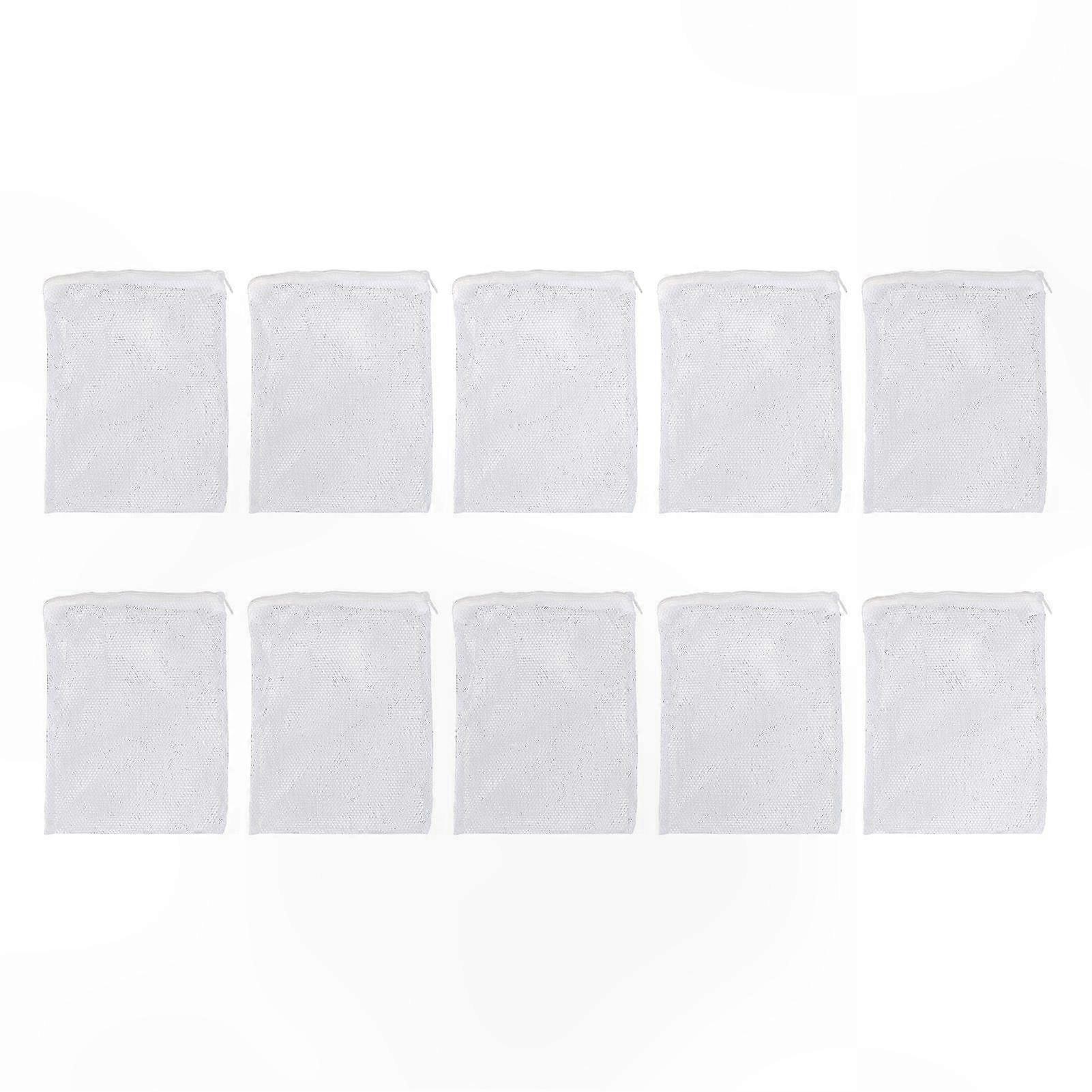 10pcs Aquarium Filter Media Bags Large Mesh Hole Fish Tank Filter Bag with Zipper for Granular Activated Carbon White