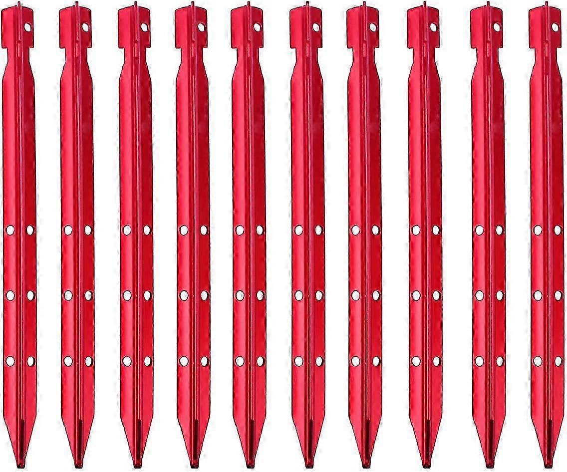 10 Pieces of Camping Pegs with Storage Bag for Tent Setup, 25 cm Length in Red Color