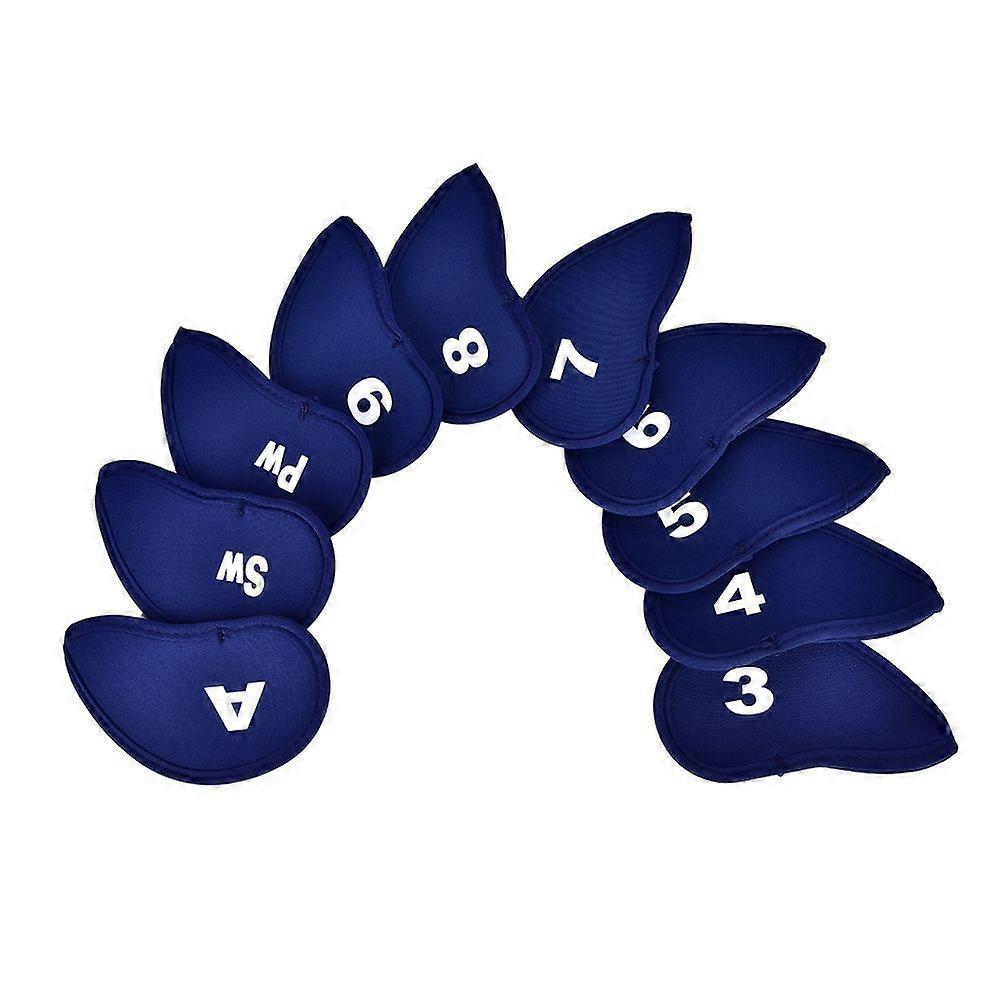 10Pcs Durable Neoprene Golf Iron Club Cue Head Protect Cover with Number Letter(Blue)