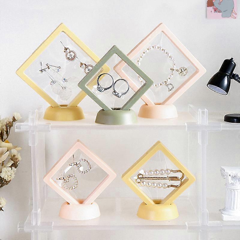 10 pieces of PE film suspension box jewelry rack transparent acrylic earrings storage earrings display rack packaging storage box 7*7 cm (pink)