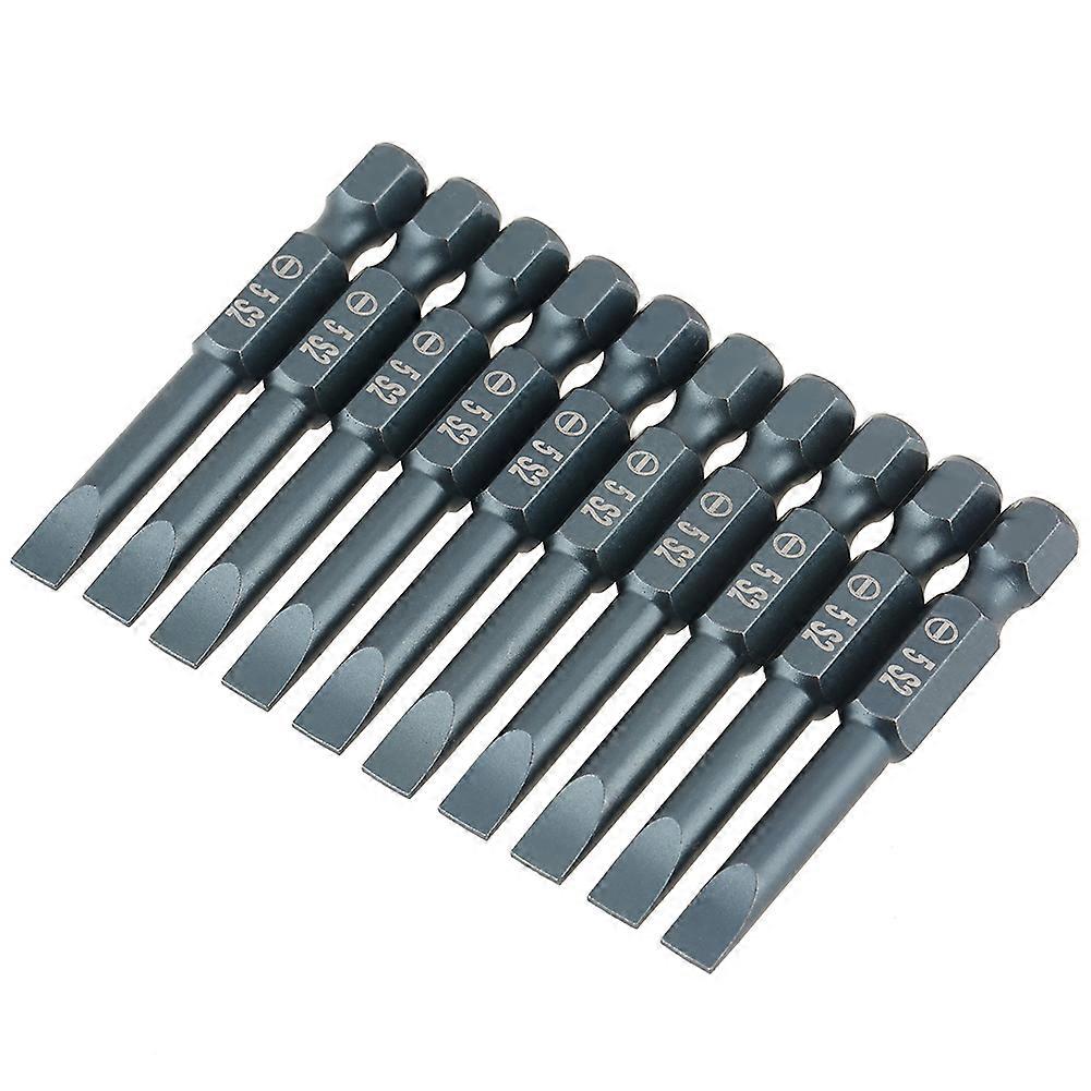 10pcs 1/4inch Hex Shank 50mm S2 Alloy Steel Slotted Screwdriver Bits Set H6.3*50*SL5mm